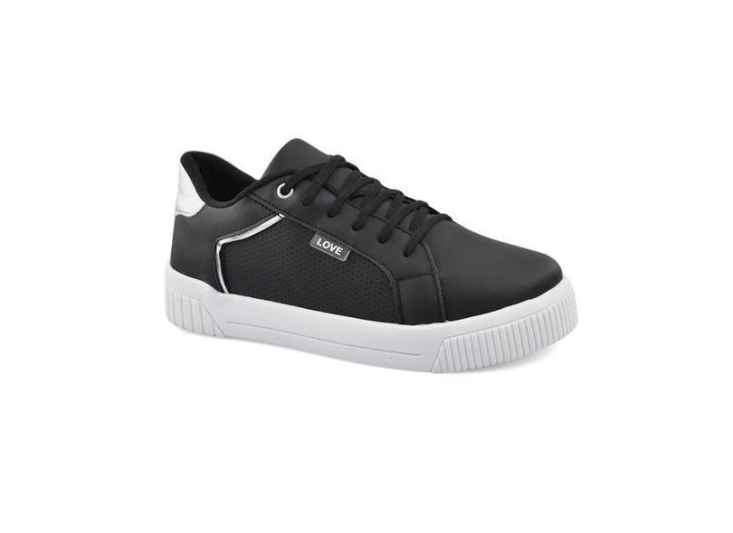 Tênis Godiva Minimalista Recortes Feminino Preto Prata, Preto, Prata,