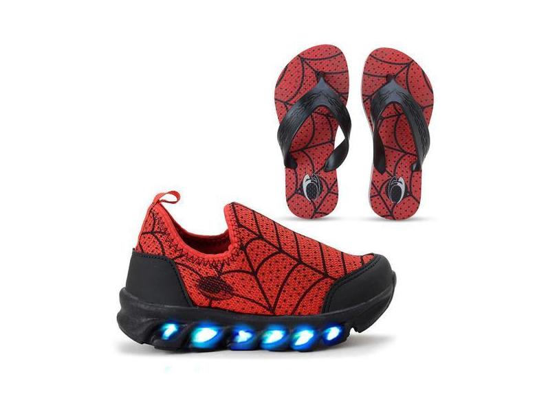 Tênis Infantil Aranha Vermelho Preto Led Luzes Coloridas Calce Fácil e