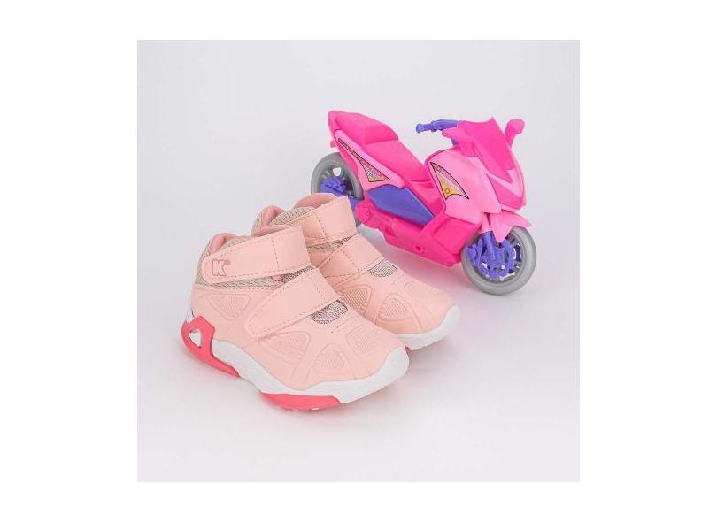 Tênis Infantil Cano Alto Kidy Play Motinha Nude E Rosa