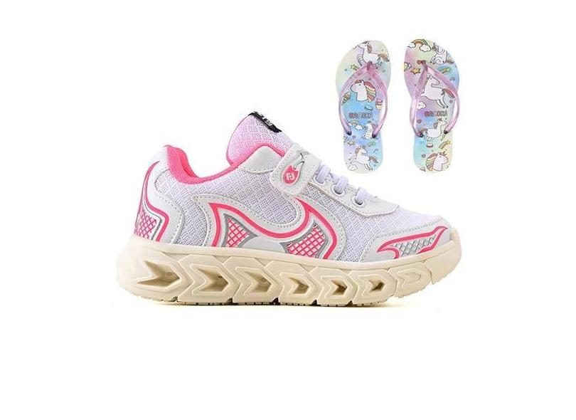 Tenis Infantil Casual Jogger Meninas Escolar Basico + Chinelo