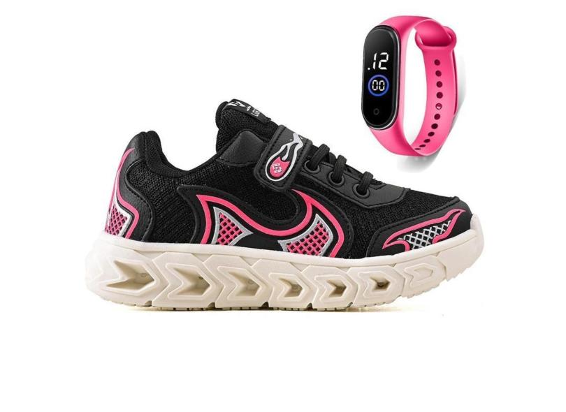 Tenis Infantil Casual Jogger Meninas Escolar Basico + Relogio-Feminino