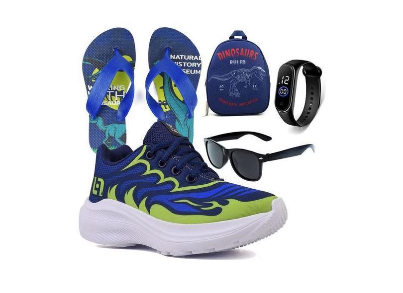 Tenis Infantil De Amarrar Meninos Leve Desenhos LIGHT + Mochila Chinel