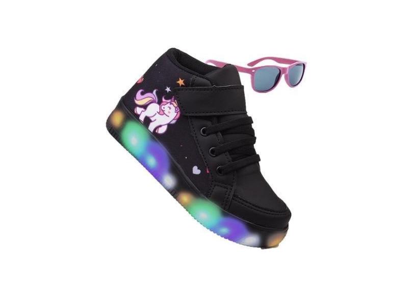 O menor preço encontrado no Brasil para Tenis Infantil De Led Botinha Unicornio Meninas Feminino + Oculos-Feminino atualmente é R$ 84,99.