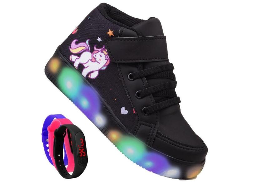 O menor preço encontrado no Brasil para Tenis Infantil De Led Botinha Unicornio Meninas Feminino + Relogio-Feminino atualmente é R$ 74,99.