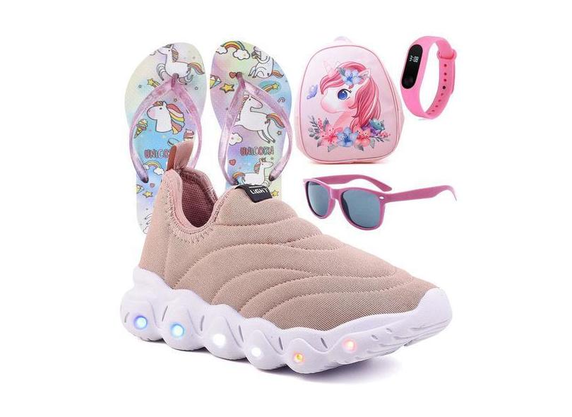 O menor preço encontrado no Brasil para Tenis Infantil De Led Calce Facil Elastico Meninas Feminino + Mochila atualmente é R$ 119,99.