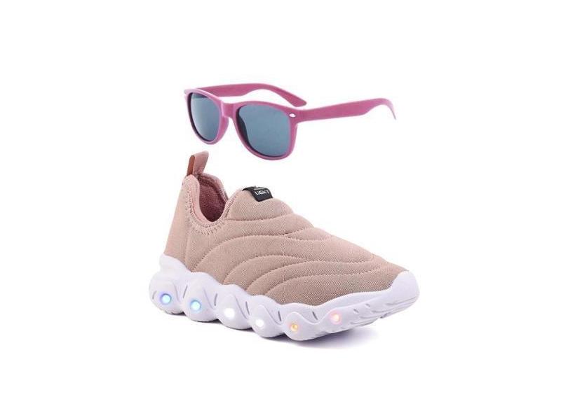 O menor preço encontrado no Brasil para Tenis Infantil De Led Calce Facil Elastico Meninas Feminino + Oculos-Feminino atualmente é R$ 84,99.
