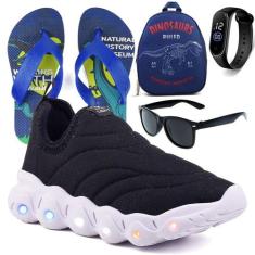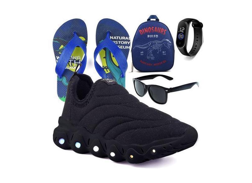 Tenis Infantil De Led Calce Facil Elastico Meninos Masculino + Mochila