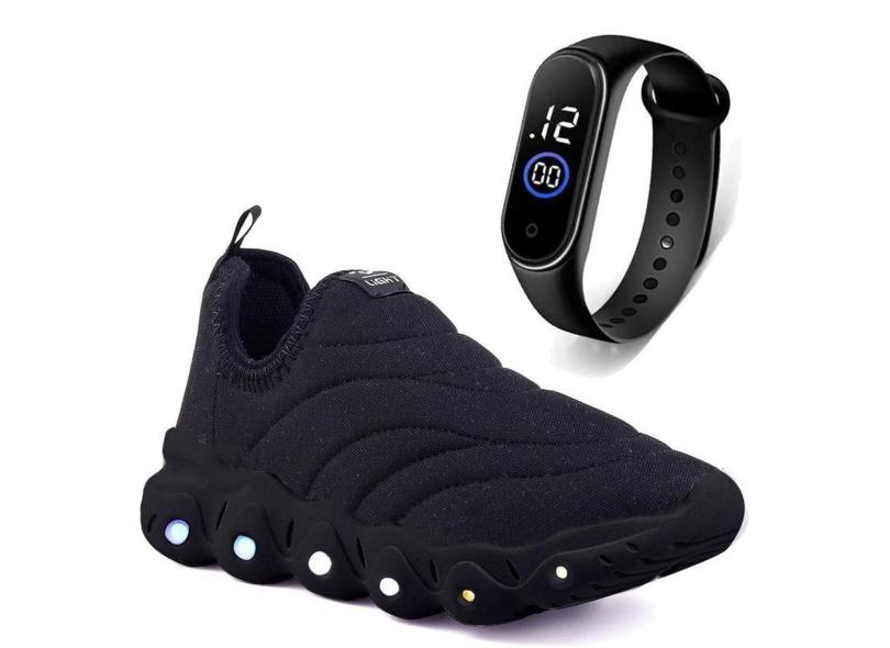 O menor preço encontrado no Brasil para Tenis Infantil De Led Calce Facil Elastico Meninos Masculino + Relogio-Masculino atualmente é R$ 84,99.