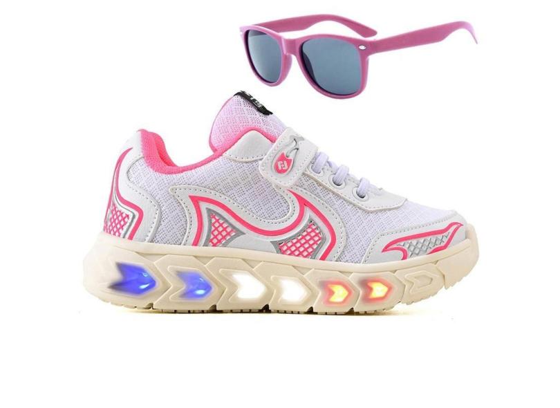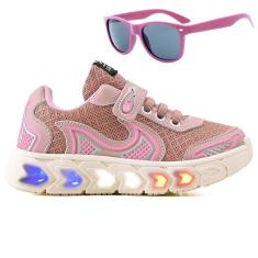 Tenis Infantil De Led Casual Jogger Meninas Escolar Basico + Oculos-Feminino