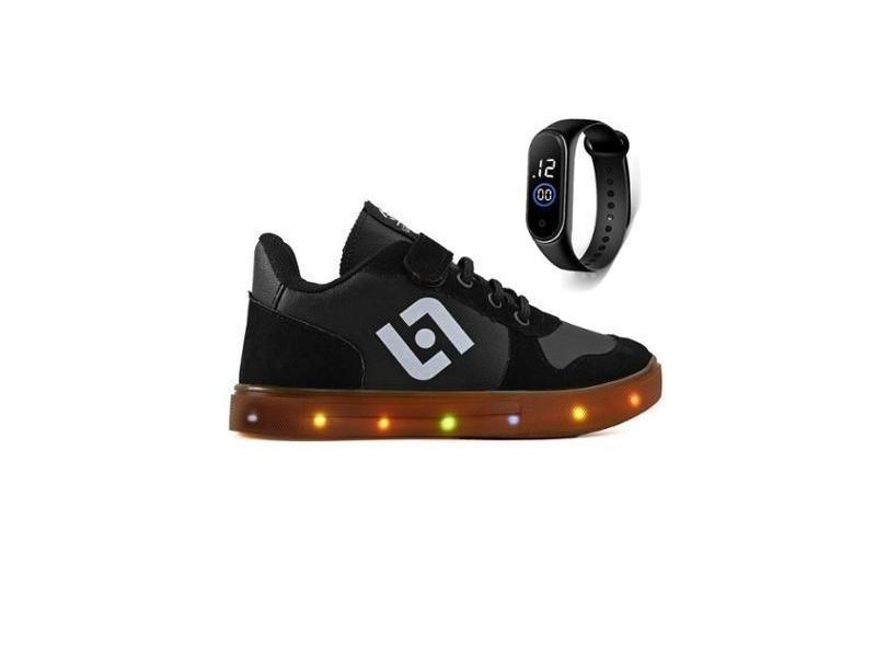 Tenis Infantil De Led Casual Sapatenis Homem Mulher Street Calce Facil + Relogio-Masculino
