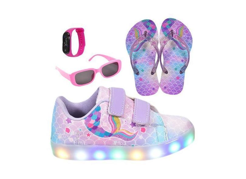 O menor preço encontrado no Brasil para Tênis Infantil De Led Feminino Casual Desenho Sereia +Chinelo+Óculos+R atualmente é R$ 131,96.