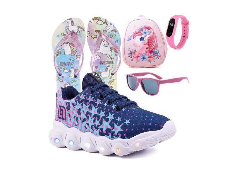 Tenis Infantil De Led Meninas Calce Facil Desenhos Luzinha Light + Moc