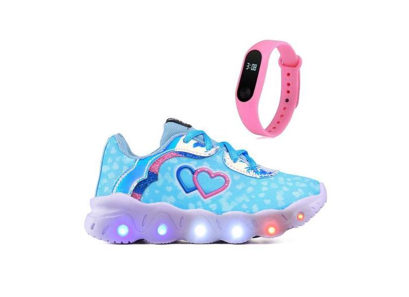 Tenis Infantil De Led Meninas Refletivo Casual Leve Relogio - Light