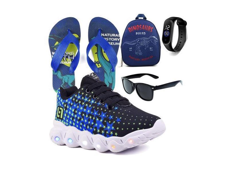Tenis Infantil De Led Meninos Calce Facil Desenhos Luzinha Light + Moc