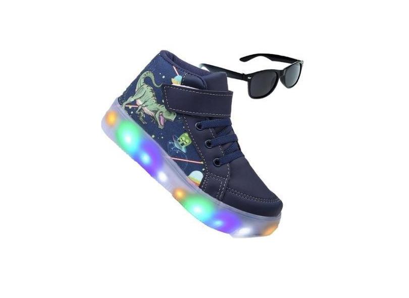 Tenis Infantil De Led Meninos Dinossauro Botinha Masculino + Oculos-Masculino