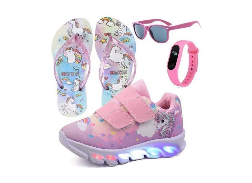 O menor preço encontrado no Brasil para Tenis Infantil De Led Unicornio Calce Facil Meninas LIGHT + Chinelo Oc atualmente é R$ 200,00.