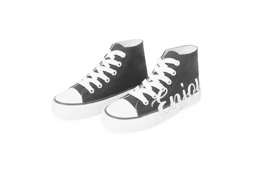 Tênis infantil de lona de cano baixo e cano alto de lona, cadarço moderno, casual, para meninos e meninas, Preto/branco, 16