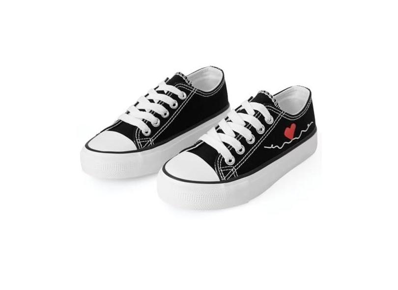 Tênis infantil de lona de cano baixo e cano alto de lona, cadarço moderno, casual, para meninos e meninas, Preto/vermelho, 16