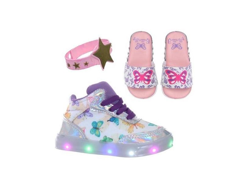 Tenis Infantil de Menina Luz Led Holografica + Chinelo Borboleta com L