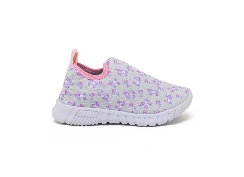 Tênis Infantil Escolar Calce Facil Leve Confortável Unicornio Cinza Ro