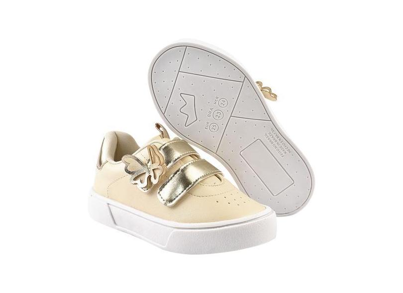 O menor preço encontrado no Brasil para Tênis Infantil Feminino Bege Solado Branco Detalhe Borboleta Fechament atualmente é R$ 43,62.