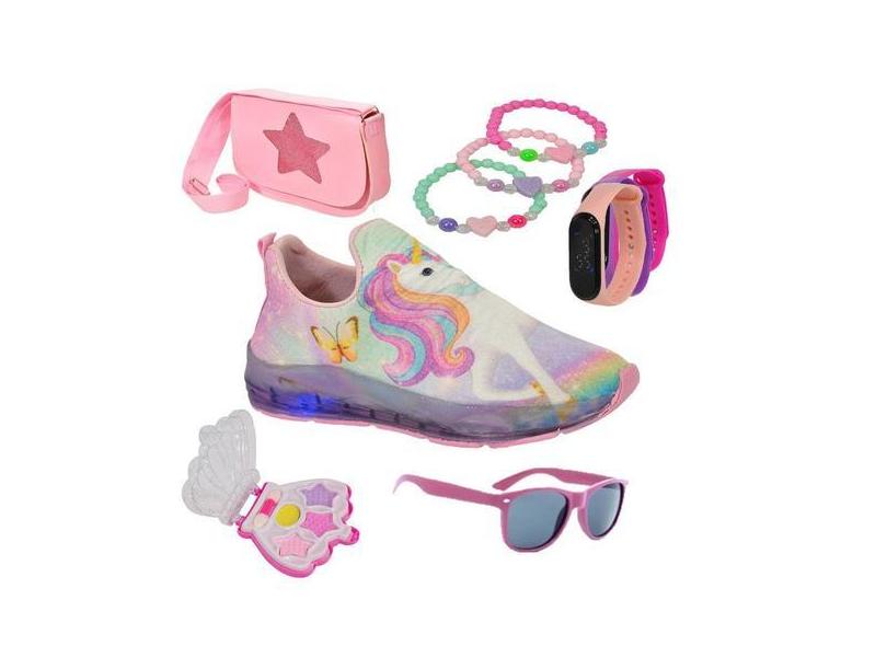 Tênis Infantil Feminino Com Led Unicórnio Slip On Menina +Bolsa+Pulsei