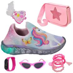 Tênis Infantil Feminino Com Led Unicórnio Slip On Menina +Bolsa+Pulsei