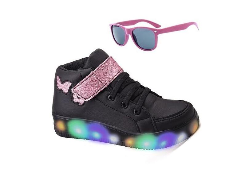 Tenis Infantil Feminino De Led Botinha Borboleta Glitter Meninas + Oculos