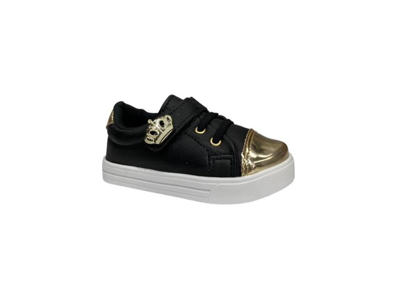 Tênis Infantil Feminino Juvenil Branco Preto Coroa 20 Ao 34-Feminino