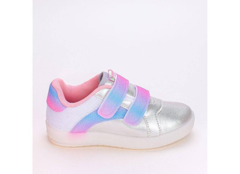 Tênis Infantil Feminino Kidy Metálico com Strass Prata