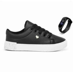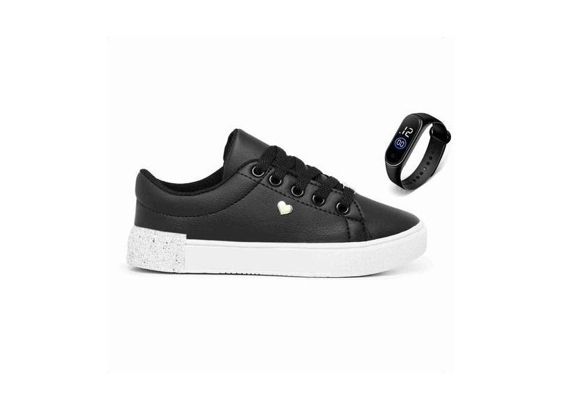 Tênis Infantil Feminino Sapatinho Menina Versatil Preto Com Relogio Di
