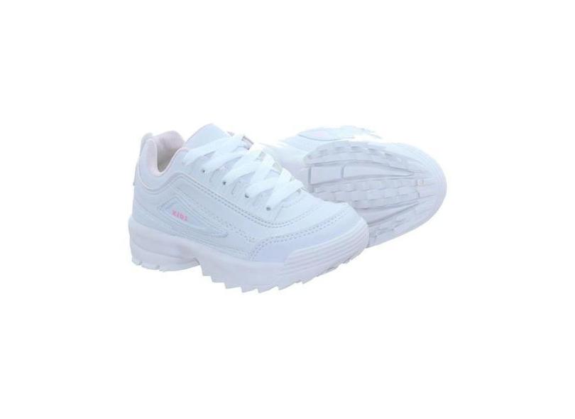 Tenis Infantil Feminino Sola Tratorada Moda Bufalo Rosa Nude Branco -