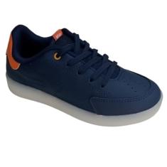 Tênis Infantil Kidy Hype Com Led Marinho E Laranja Escolar Escola Colegial Colégio Original Menino Masculino Conforto Durabilidade AnatômicoVoltasàsAulas Macio Calce FácilResistente