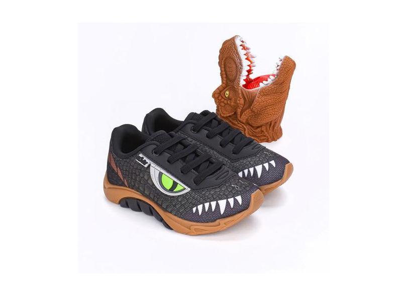 Tênis Infantil Masculino Kidy Mais Preto Fantoche Dinossauro