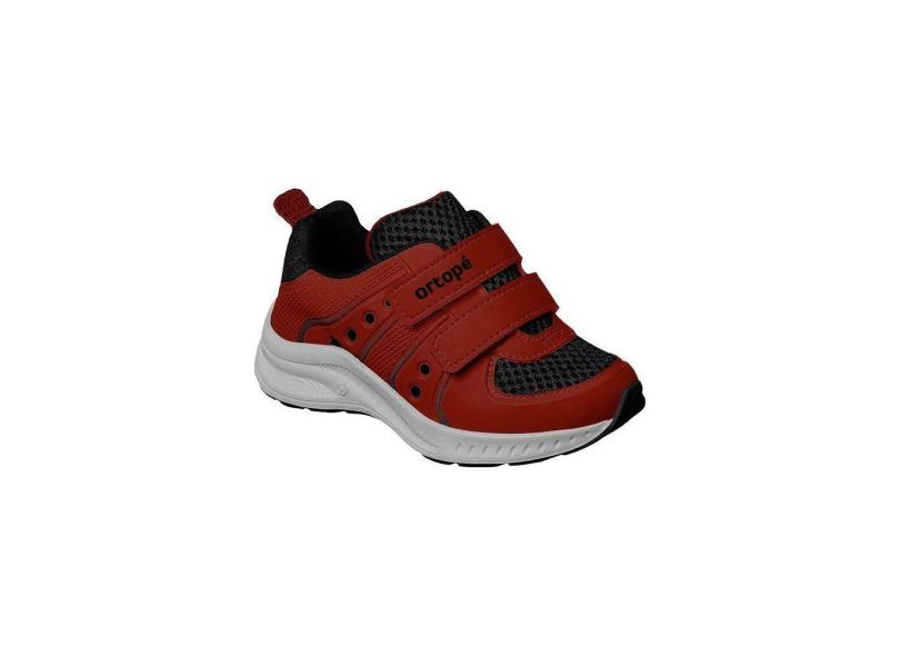 Tênis Infantil Masculino Ortopé Dna Flex Fecho Duplo Detalhe Lateral Preto e Vermelho