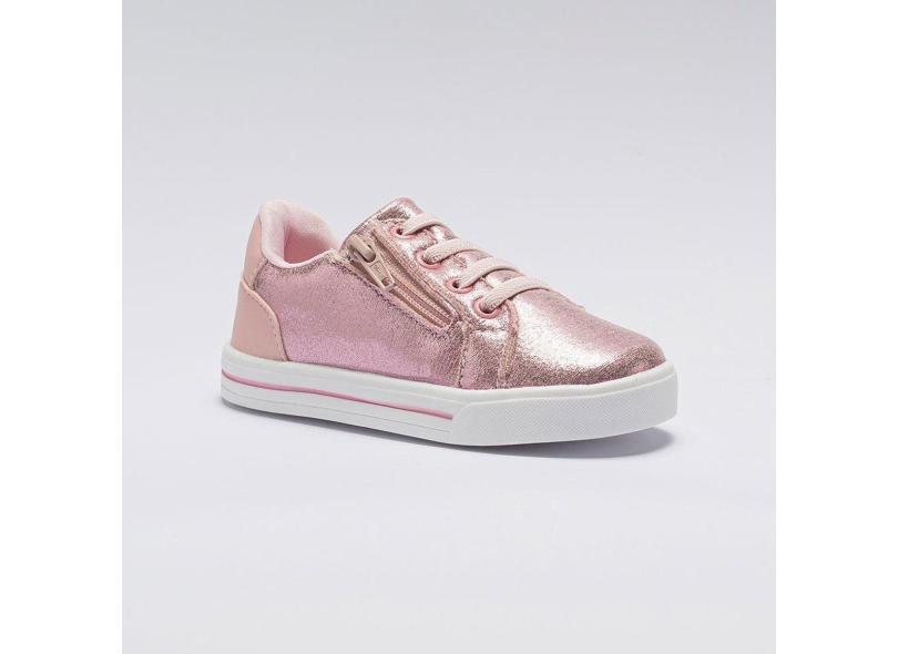 Tênis Infantil Menina Casual Acetinado Calce Fácil Zíper Rosa-Feminino