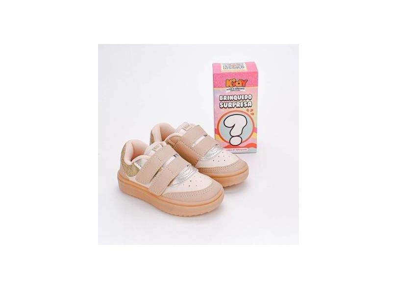Tênis Infantil Menina Kidy Happy Casual Com Surpresa Glitter Dourado Bege-Feminino