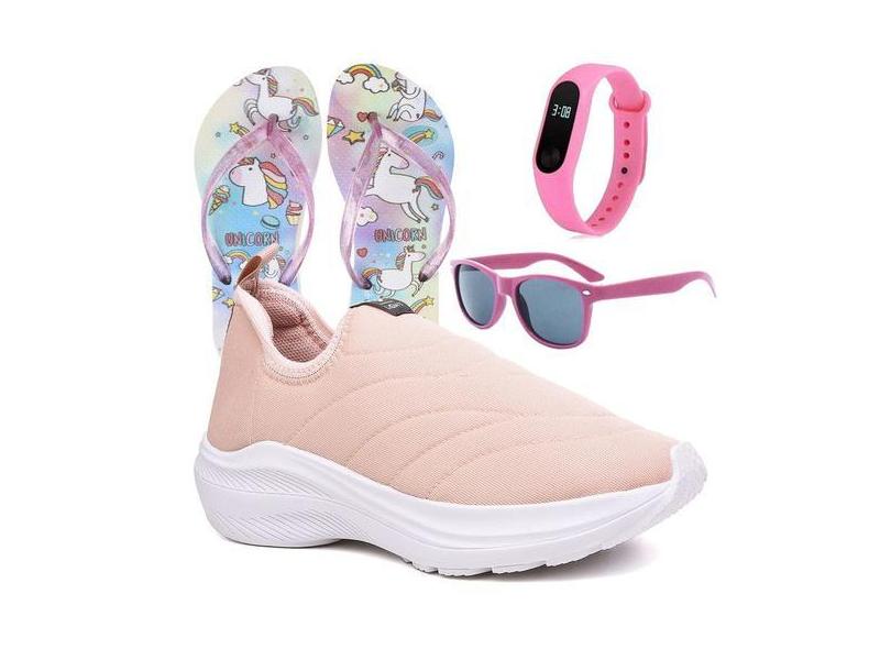 Tenis Infantil Meninas Calce Facil Leve Tipo Meia + Chinelo Oculos Rel