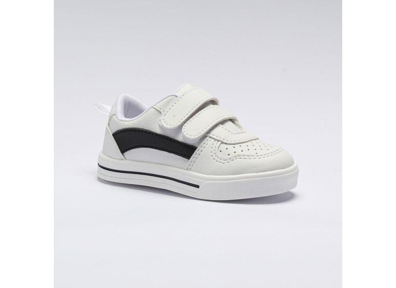 Tênis Infantil Menino Casual Calce-Fácil Branco Listra Preta-Masculino