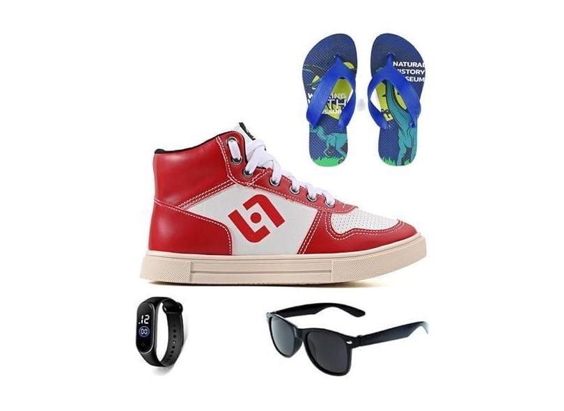 Tenis Infantil Meninos Botinha Cano Alto Escolar Casual Basico + Chinelo Oculos Relogio