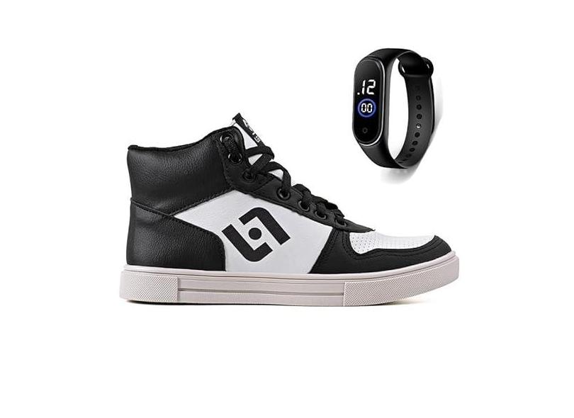 Tenis Infantil Meninos Botinha Cano Alto Escolar Casual Basico + Relogio