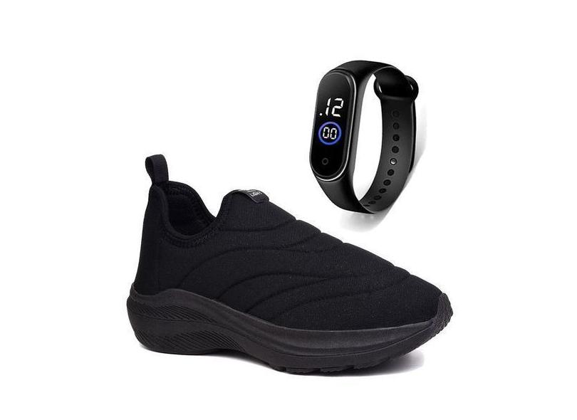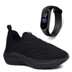Tenis Infantil Meninos Meninas Calce Facil Leve Tipo Meia + Relogio -