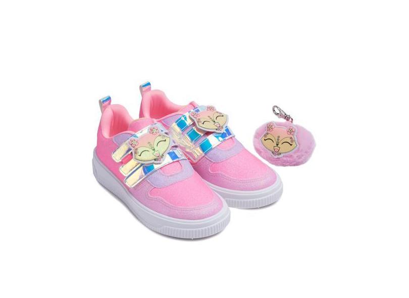Tênis Infantil Pampili Pamps Glitter Com Chaveiro Rosa Neon