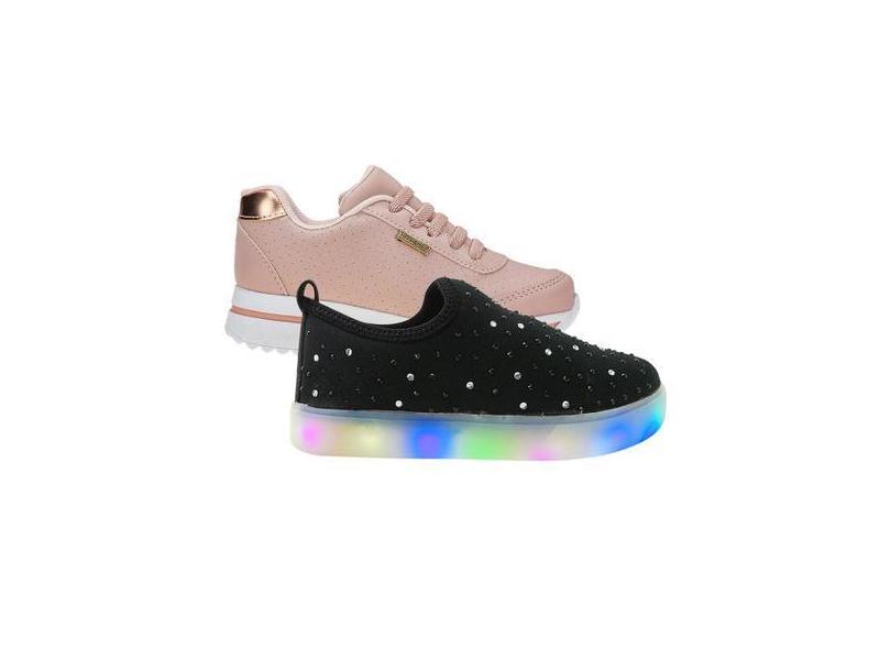 O menor preço encontrado no Brasil para Tenis Led Infantil de Menina - KIT 2 PARES Tam 24 ao 34 - sapatinhos.c atualmente é R$ 228,14.