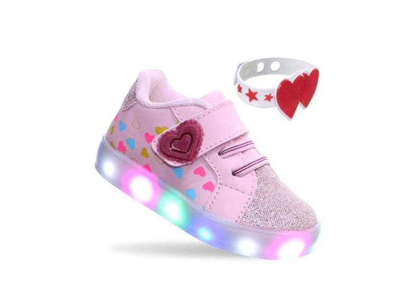 Tenis Led Infantil Feminino Menina Coração Com Pulseira Rosa - Pemania