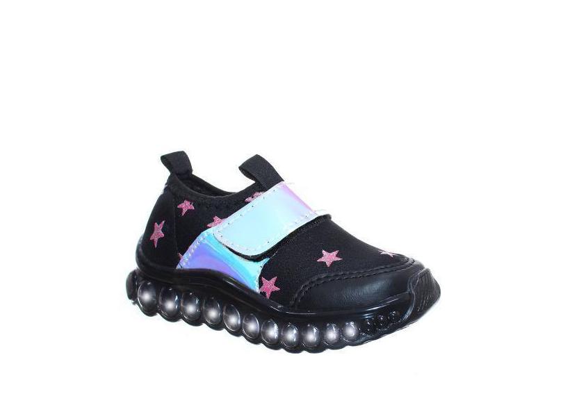 Tênis Led Infantil Feminino Meninas Preto Estrela Rosa Holográfico - P