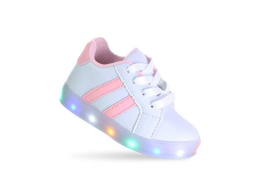 Tenis Luzinha Luz Led Infantil Juvenil Feminino Menina Branco Rosa - P