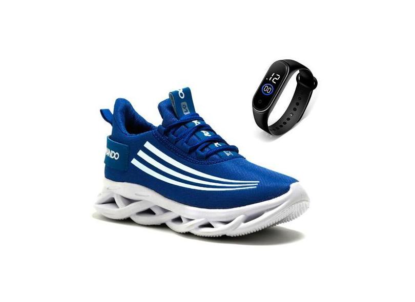 Tênis Masculino Academia Caminhada Leve + Relógio - DM DAMANDO, Azul r