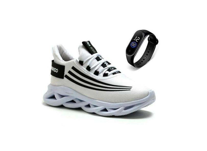 Tênis Masculino Academia Caminhada Leve + Relógio - DM DAMANDO, Branco
