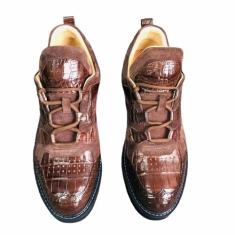 O menor preço encontrado no Brasil para Tênis masculino autêntico de couro de jacaré genuíno de couro de crocodilo com cadarço e cano alto, Marrom, 41 atualmente é R$ 1.655,97.